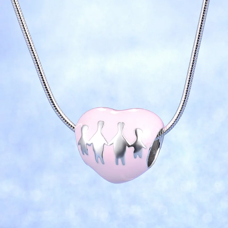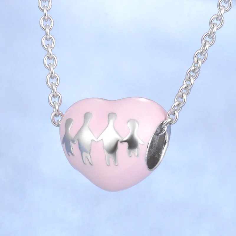 Best 2018 Fashion Enamel Pink Heart Shape With Family Theme Best Quality Fine Jewelry S925 Sterling Silv