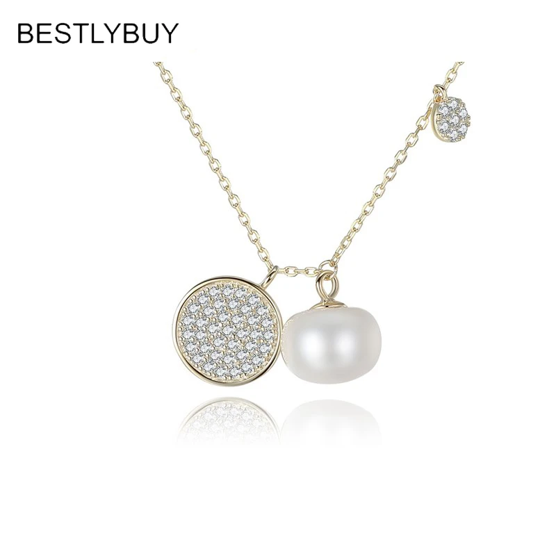 Hot Sale BESTLYBUY Real 925 Sterling Silver Chain Necklace Natural Cultured Fresh Water Pearl Pendant Women