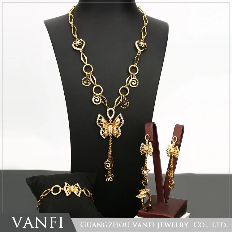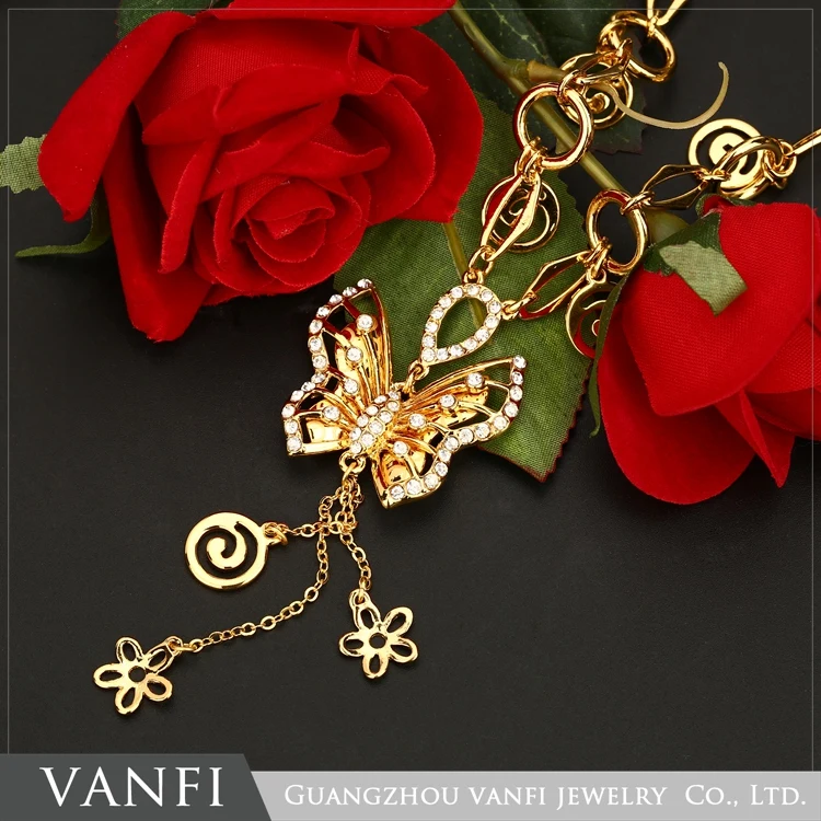 Best Fashion Bridal Butterfly Flower Jewelry Set Crystal Bride Necklace Earrings Set Shining Gold Color