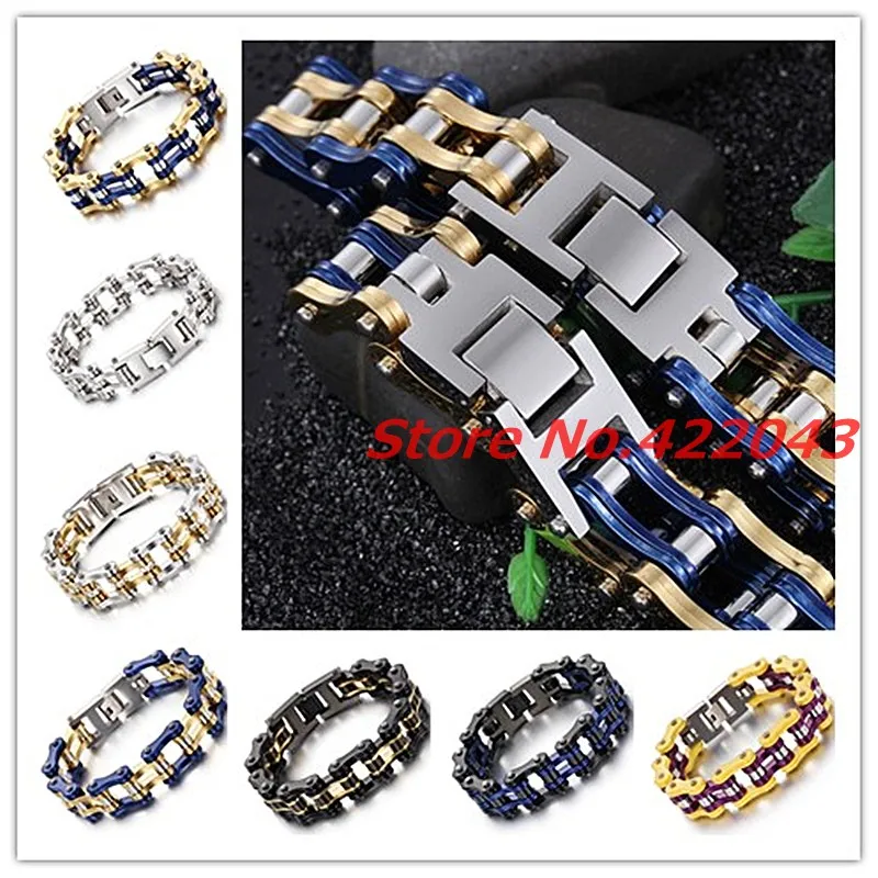 Fashion Charm Mens Bracelets Men Jewelry Multi-Color Choose Stainless Steel Motorcycle Bicycle Chai