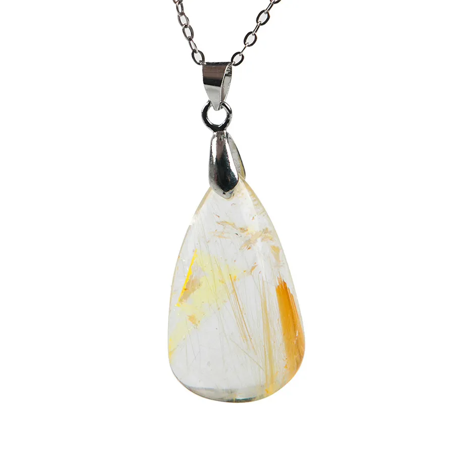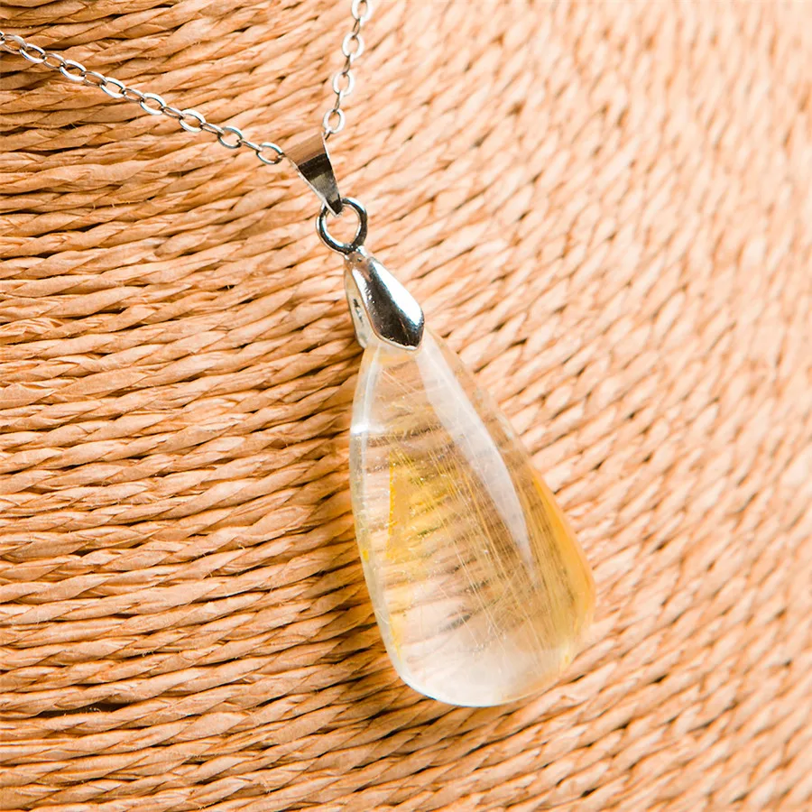 2018 Newly Genuine Natural Titanium Rutilated Crystal Water Drop Shaped Bead Charm Women Crystal St