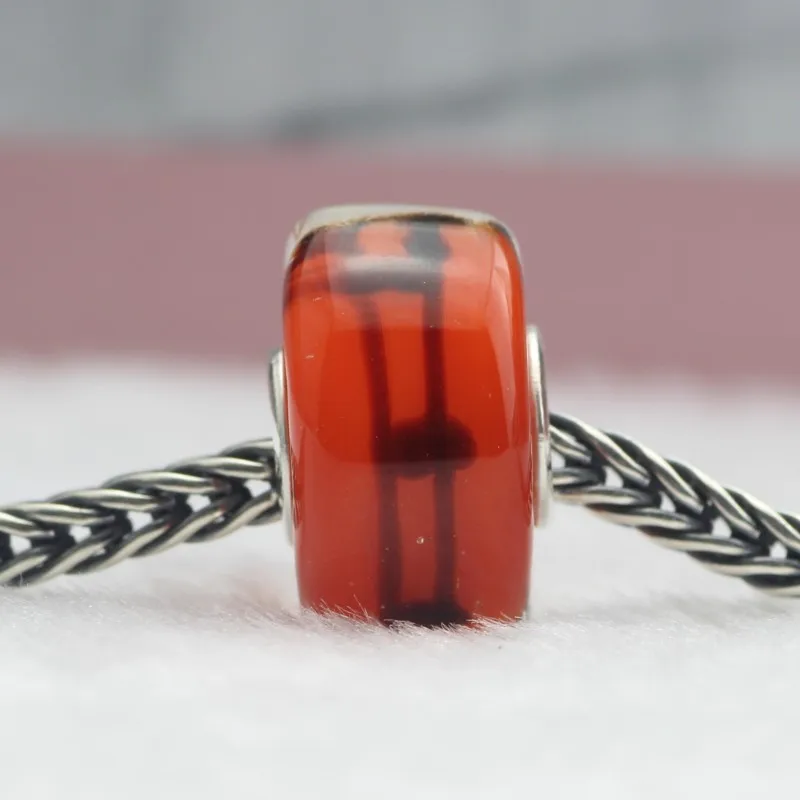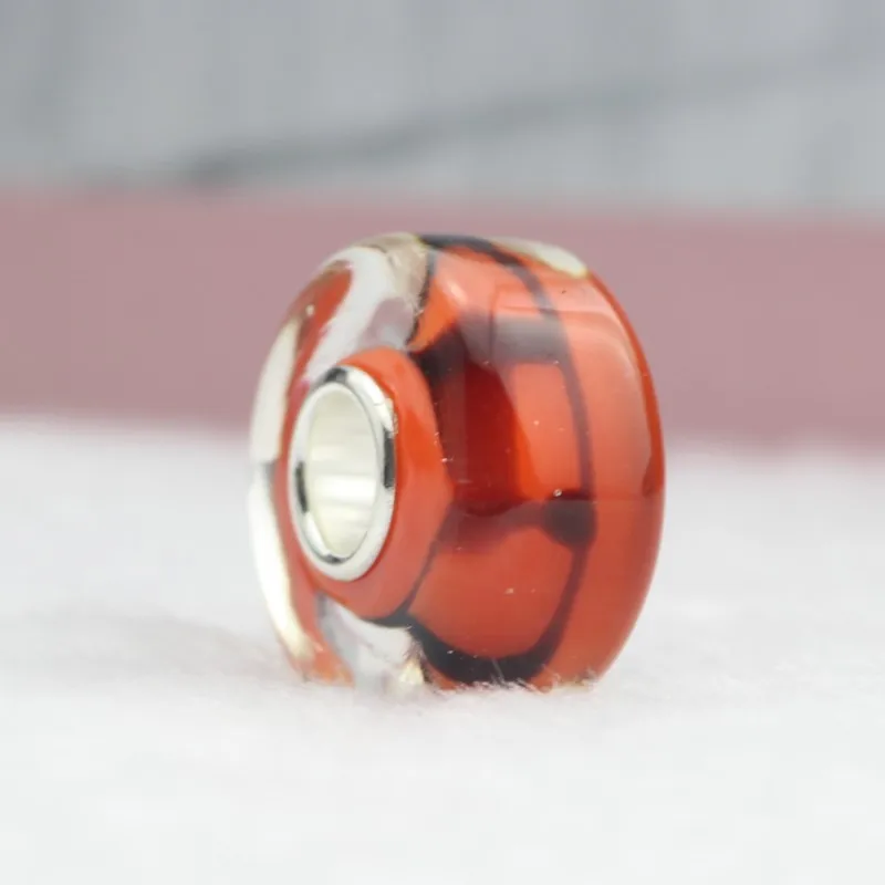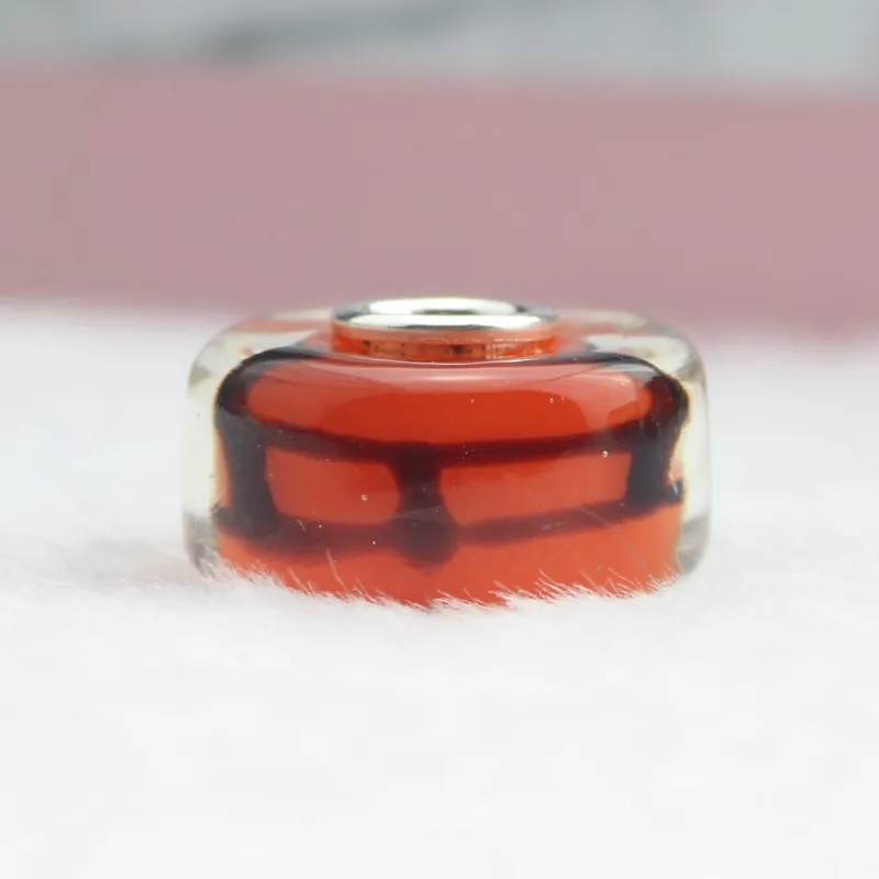BEST SELLER 925 Sterling Silver Orange Notes Glass Beads 4.5mm Hole Fit Original Troll Bracelet beads Diy Jewel