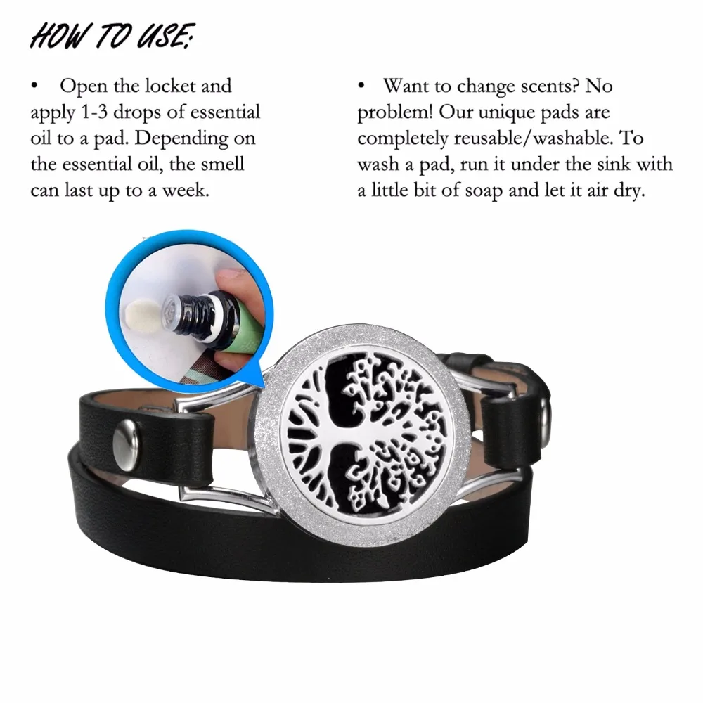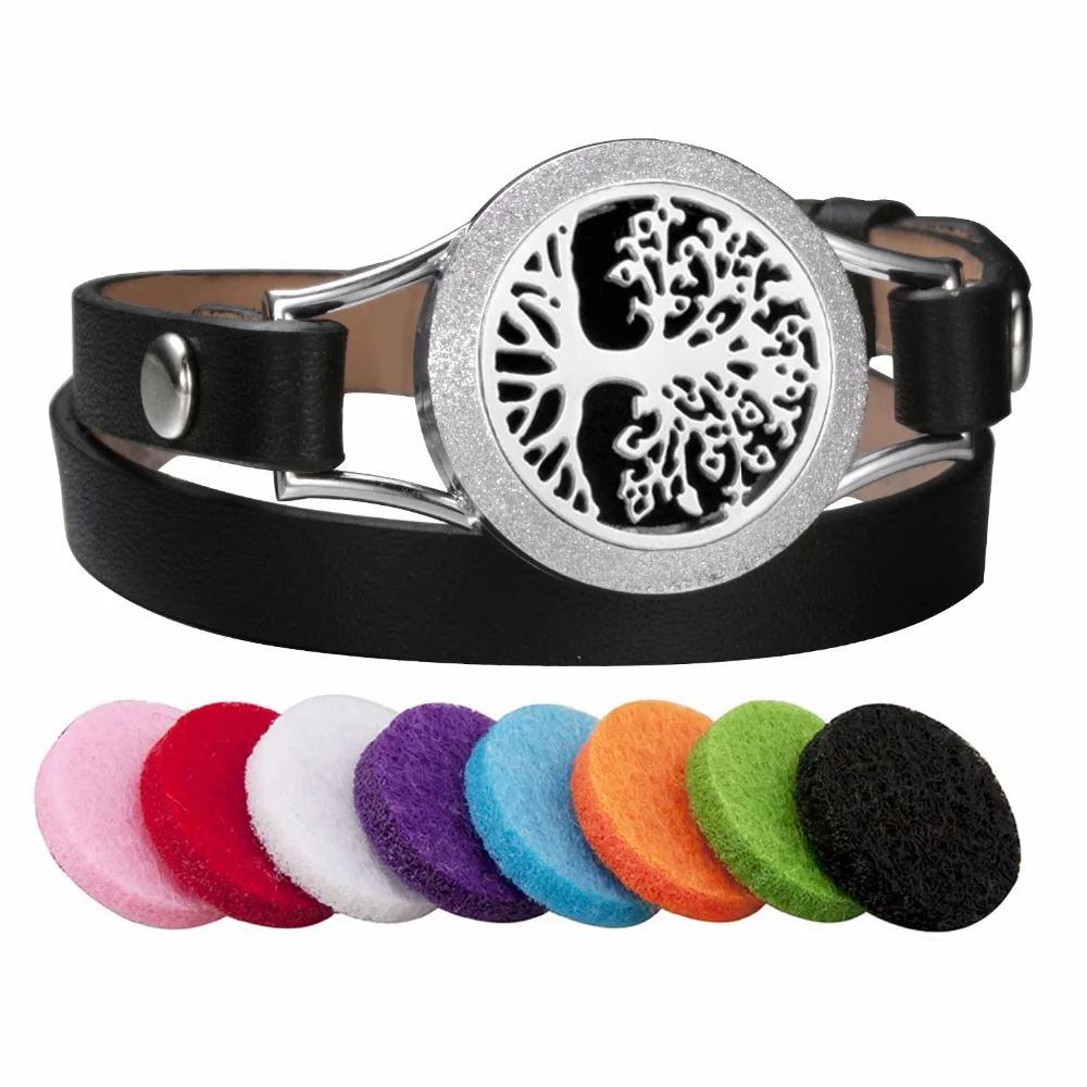 EVERLEAD Genuine Leather Wrap Bracelet Tree of Life Diffuser Floating Healthy Living Aromatherapy J