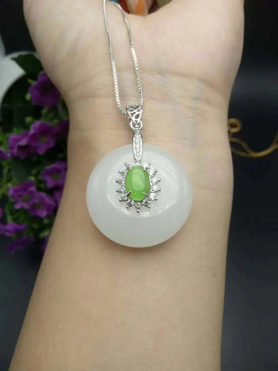 Koraba Fine Jewelry Unique Fashion Natural White Jade Carving of Peace Buckle Shape Pendant Necklac