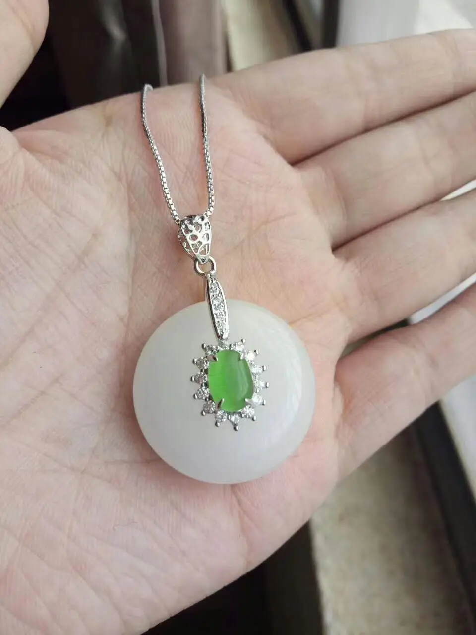 BEST SELLER Koraba Fine Jewelry Unique Fashion Natural White Jade Carving of Peace Buckle Shape Pendant Necklac