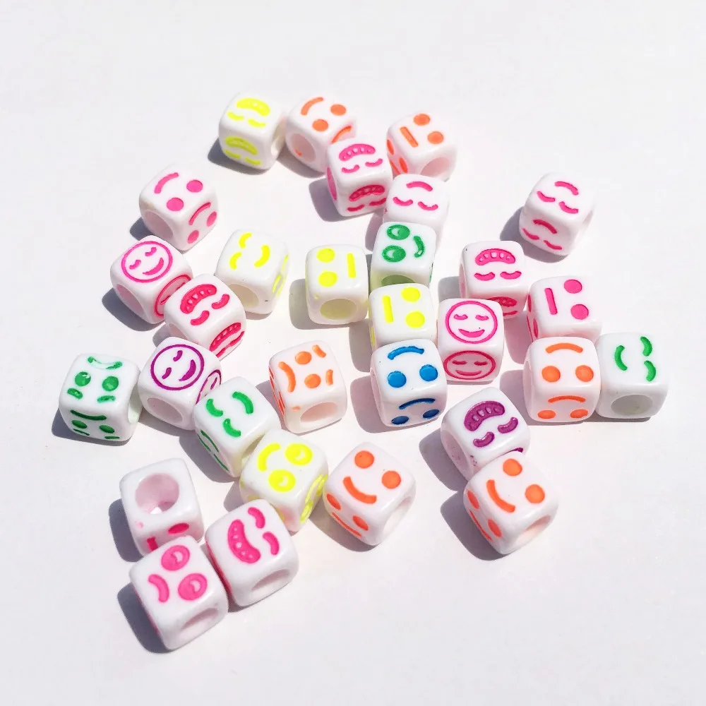 Best Seller Wholesale 6*6MM 2800pcs/Lot DIY Jewelry Beads Mixed Neon Colors Smiling Face Printing Cube Square L