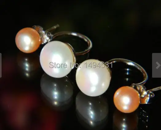 BEST Wholesale Pearl Jewelry White Pink Genuine Freshwater Pearl EarringsSterling Silver Classic Style E