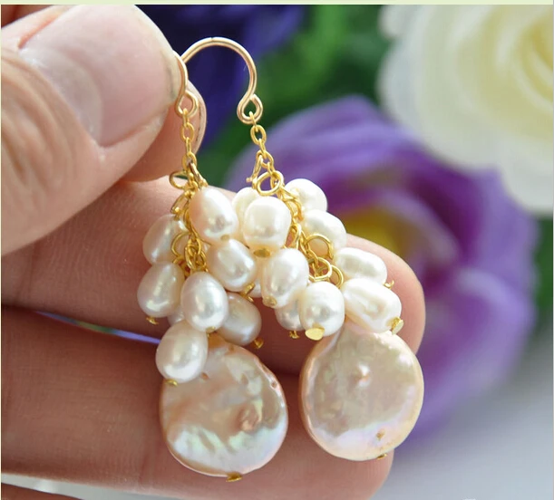 BEST QUALITY Women Gift word Love women Fashion Jewelry shipping@@@@@ P4425 14MM PINK COIN WHITE RICE FRESHWATER