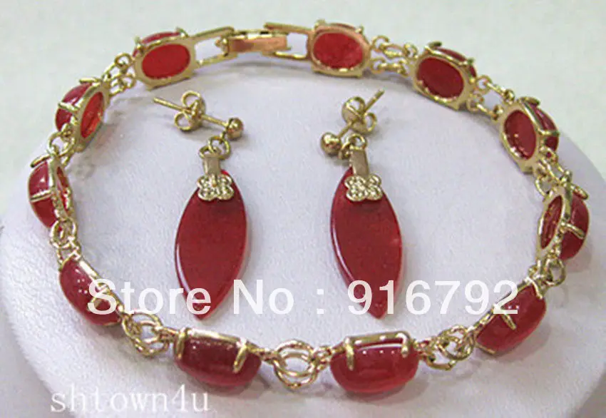 women good Wholesale Beautiful silver plate red stone bracelet earrings real Natural gem stone 925
