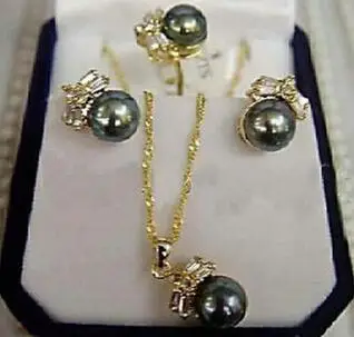 Best Quality fine Lovely Wonderful word CHARMING Black Pearl Earring Ring & Necklace Set