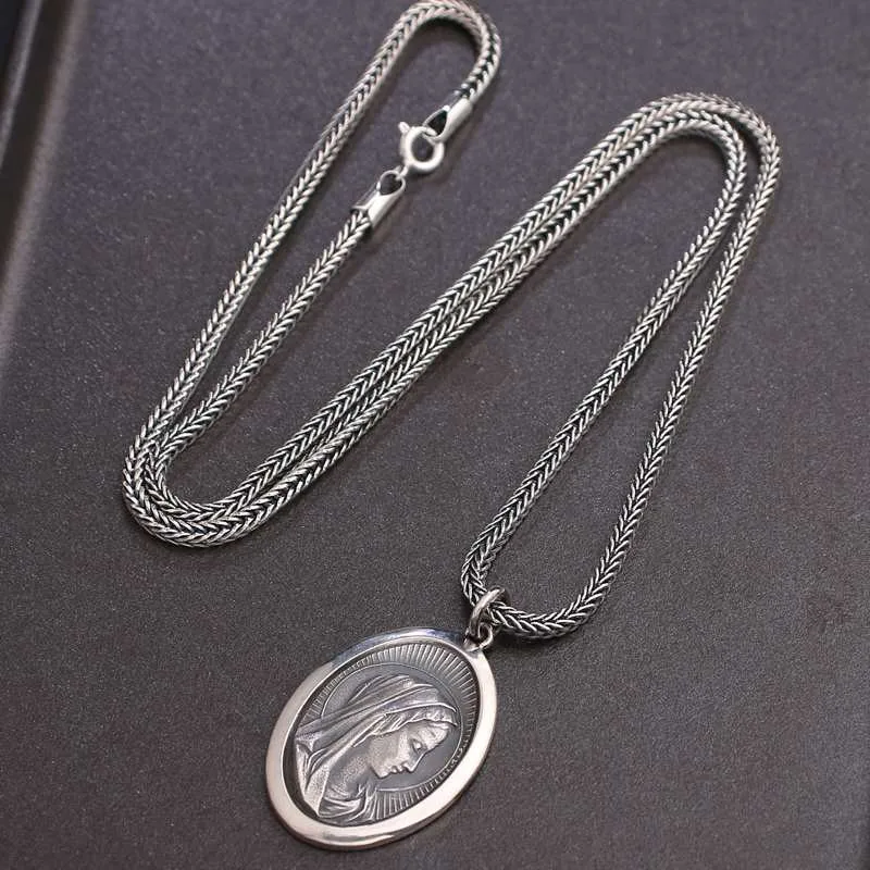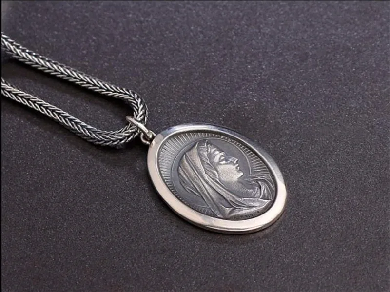Best Quality Pure 925 Sterling Silver Virgin Mary Oval Pendant For Necklace Men Women Oxide Thai Silver Fashion