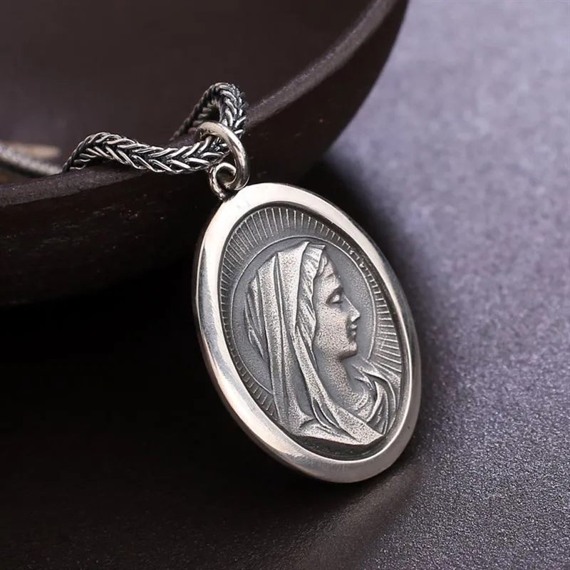 HOT SALE Pure 925 Sterling Silver Virgin Mary Oval Pendant For Necklace Men Women Oxide Thai Silver Fashion