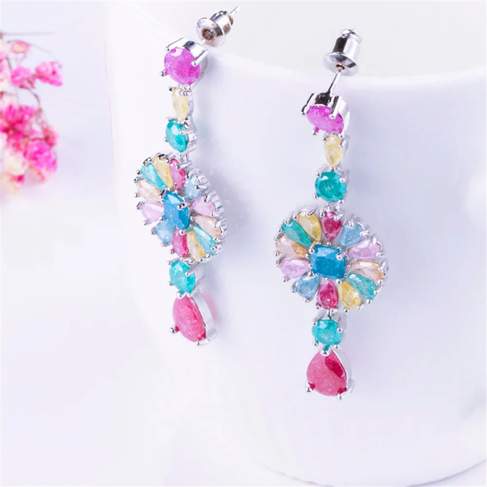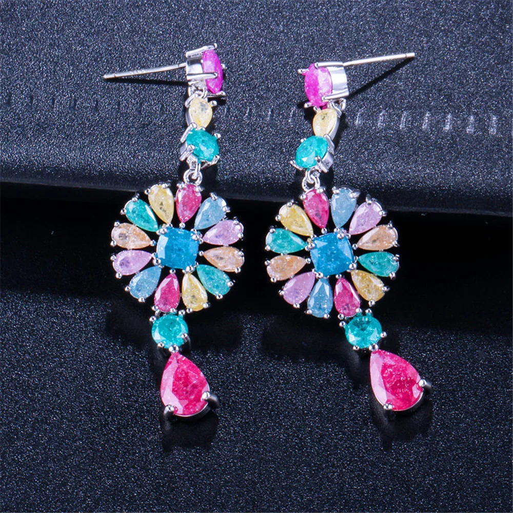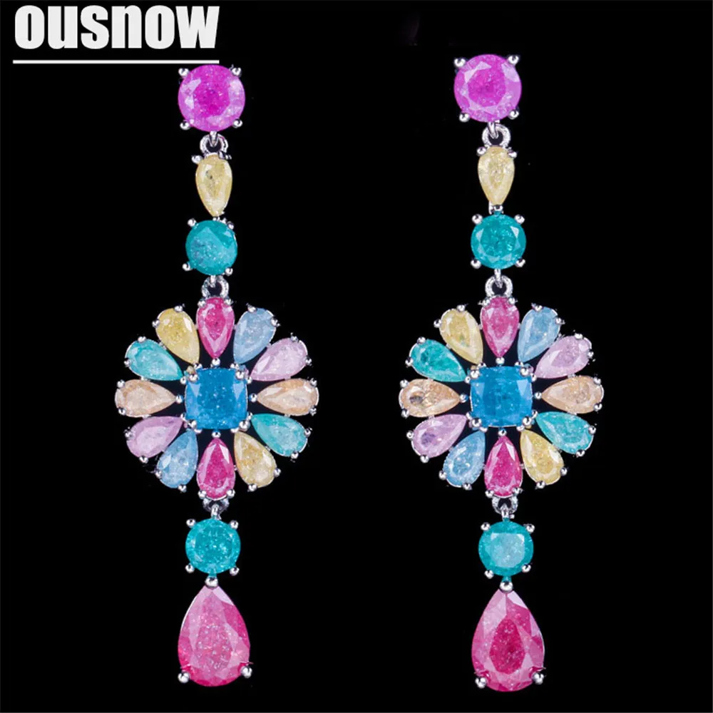 HIGH QUALITY Handmade luxury multicolor long earrings AAA zircon earrings S925 sterling silver needle fashion je