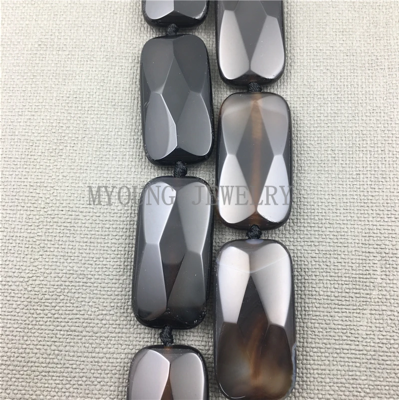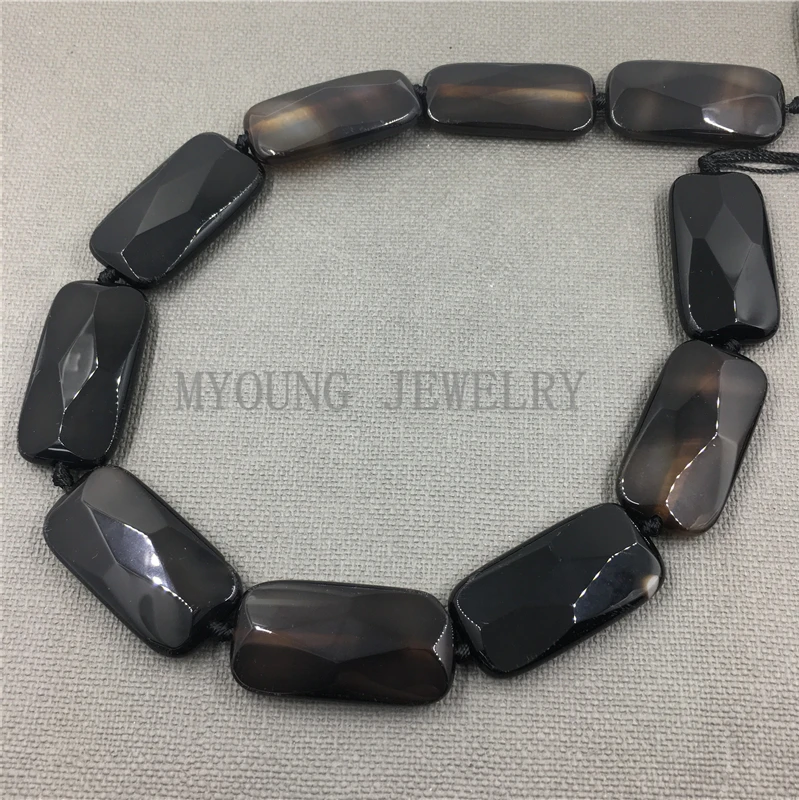 ORIGINAL MY1180 Rectangle faceted Black brown agates slice pendant beads Onyx slab beads for jewelry
