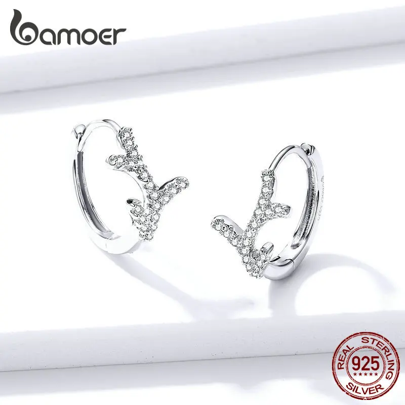 BEST Sterling Silver 925 Hoop Earrings for Women Wedding Statement Clear CZ Branch Bijoux Fashion Jewelr