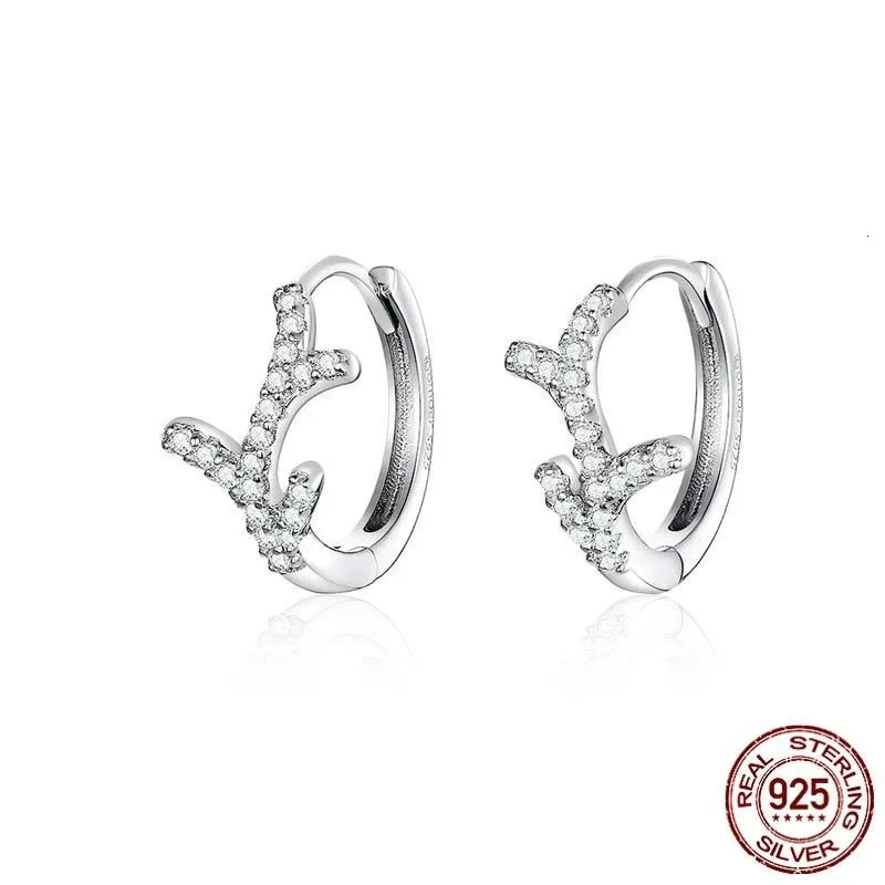 Sterling Silver 925 Hoop Earrings for Women Wedding Statement Clear CZ Branch Bijoux Fashion Jewelr