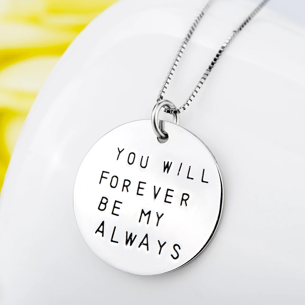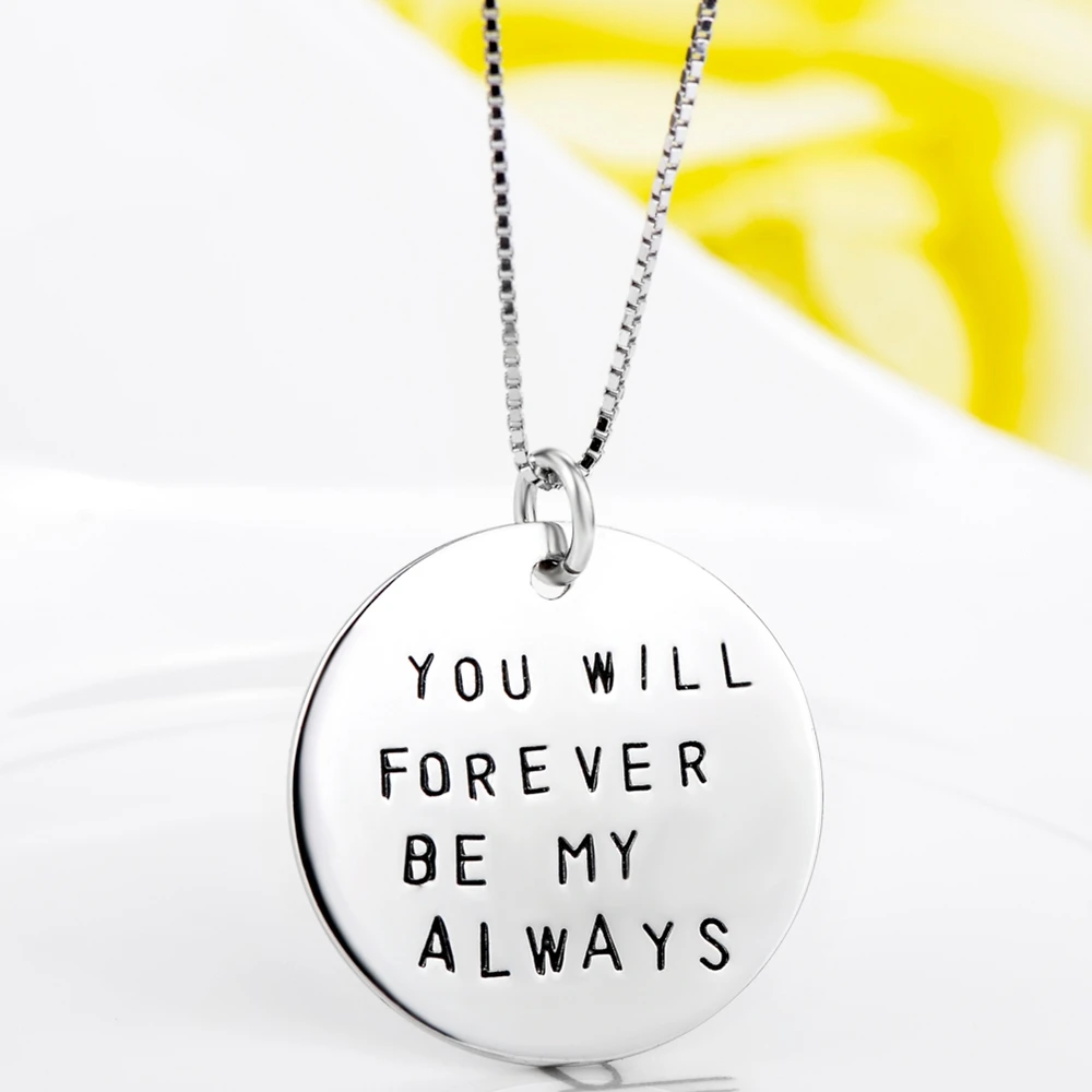 HIGH QUALITY Genuine Fashion 925 Sterling Silver Jewelry Round Card Letter Pendant Necklace Women Girls Lovers'P