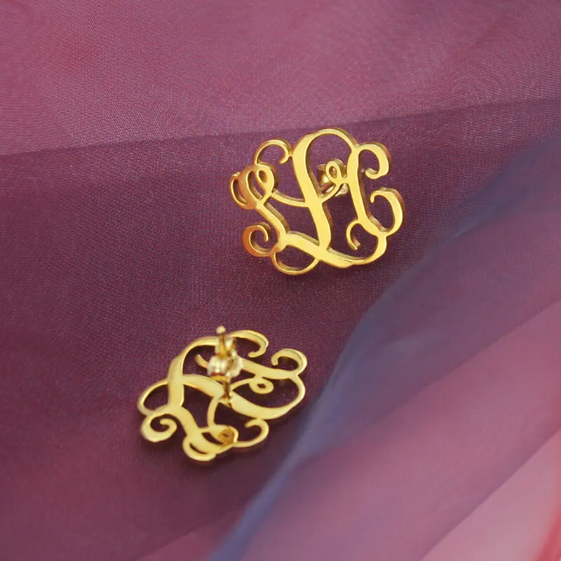 Best Seller AILIN Gold Color MO Stud Earrings Personalized Monogram Earrings Initial Earrings Monogram Jewelry