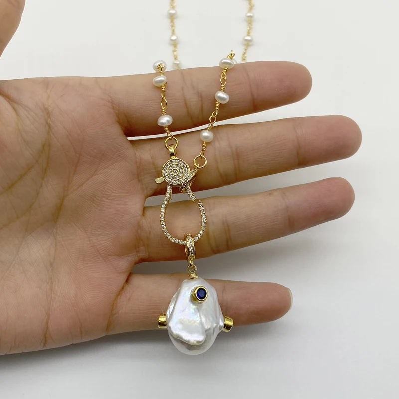 Handmade Freshwater Pearls Chain Necklaces Clasp And Pearl Pendants Fashion Jewelry