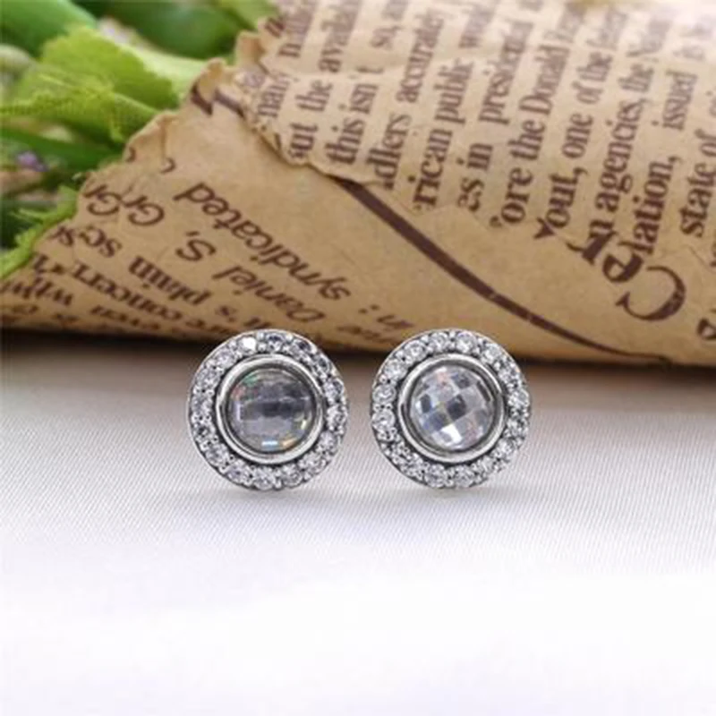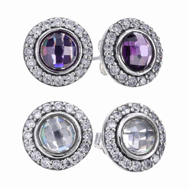 925 Sterling Silver Double Stud Earrings 2 Color Full Crystal Round Earrings For Women Wedding Jewe